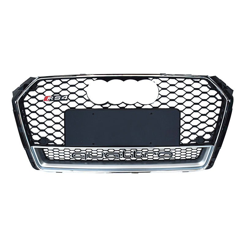 Transform your B9 A4/S4 with this high-quality RS4-style honeycomb grille, featuring an integrated Quattro lower mesh for a complete performance look.
