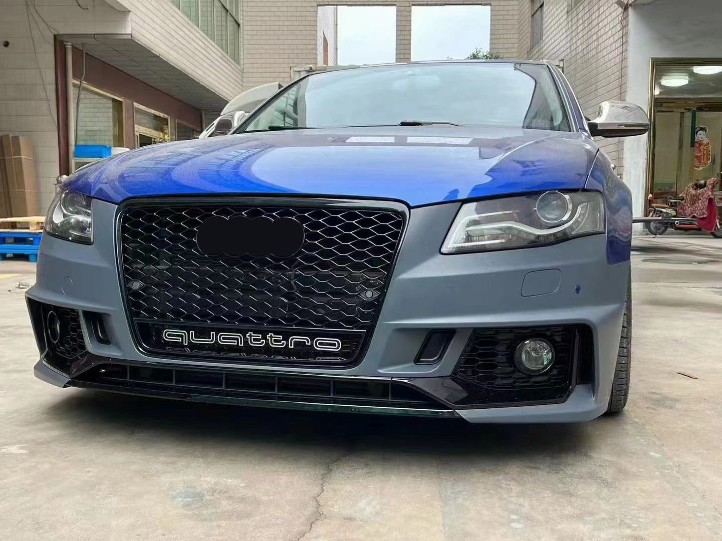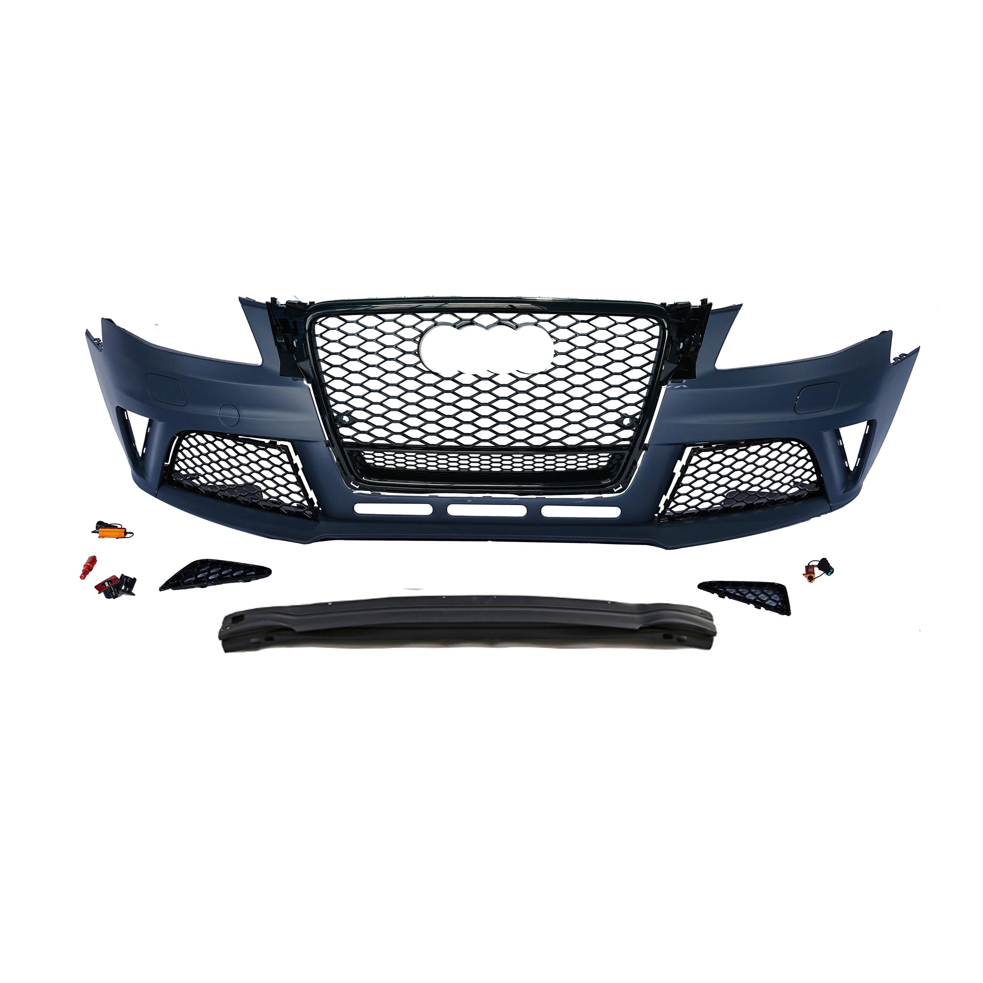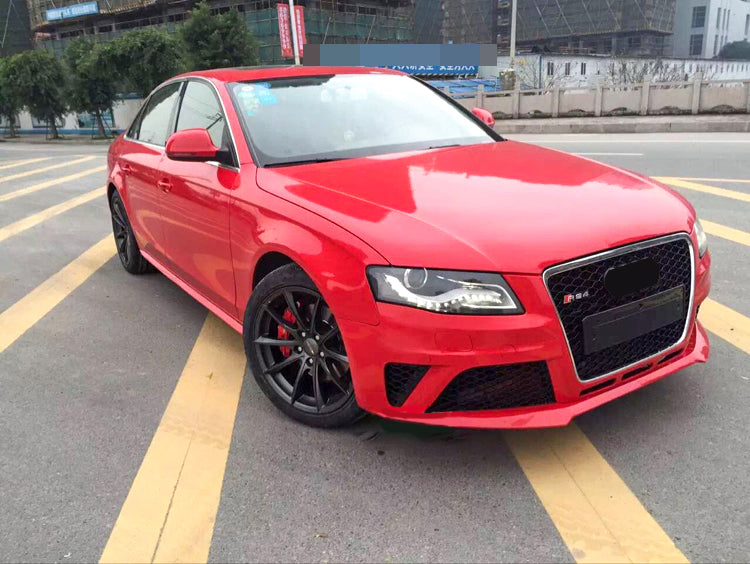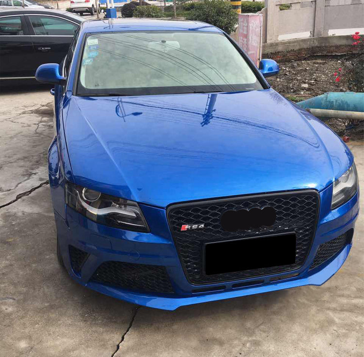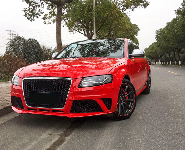 Upgrade your Audi A4/S4 B8 with the aggressive look of an RS4! This factory-style front bumper is crafted from high-quality PP/ABS plastic for durability and flexibility, faithfully replicating the iconic RS4 honeycomb grille and fog light grille design.